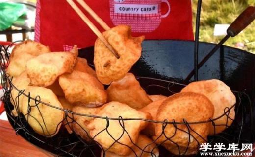 衢州油炸果也是當地的一種特色油炸食品,在制作的時候選用優質的面粉,筍干丁為主要的制作原材料,用特殊的手法將其制作成固定大小的圓形,再在油鍋中炸制而成。衢州油炸果經過高溫油炸之后,其表面變得金黃酥脆,內里包裹的餡料更是酥軟可口。當地人會將其與臭豆腐,芝麻燒餅再加入辣椒醬一同食用,非常的美味。kJF子文庫范文網